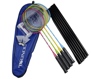 カスタマイズされたポータブル良質バドミントンラケット4人セットネット3ボール付き屋外家族の楽しみのため